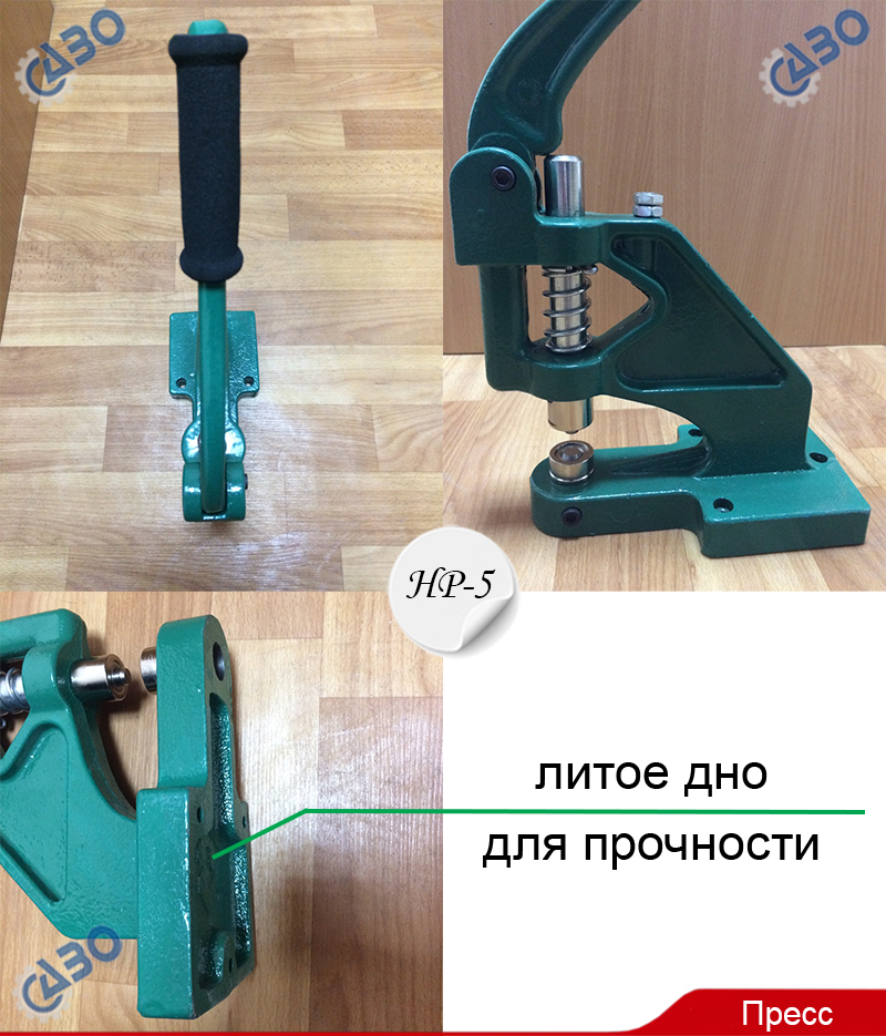 Универсальный ручной пресс для установки металлической фурнитуры в виде люверсов различного диаметра.