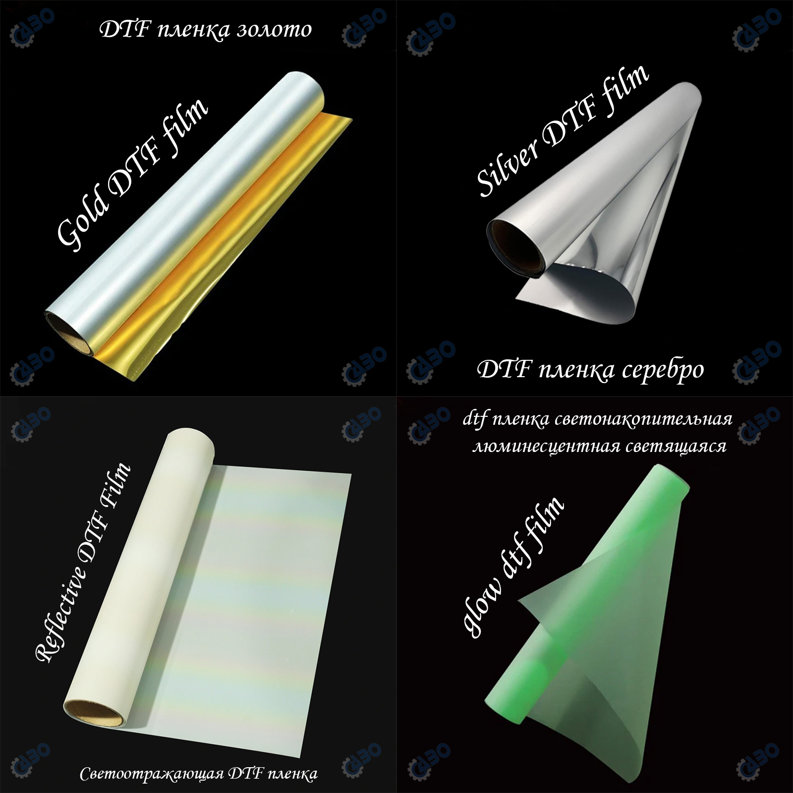 DTF PET FILM gold silver GLOW svetonakopitel'naya lyuminestsentnaya svetyashchayasya дтф пленка azo