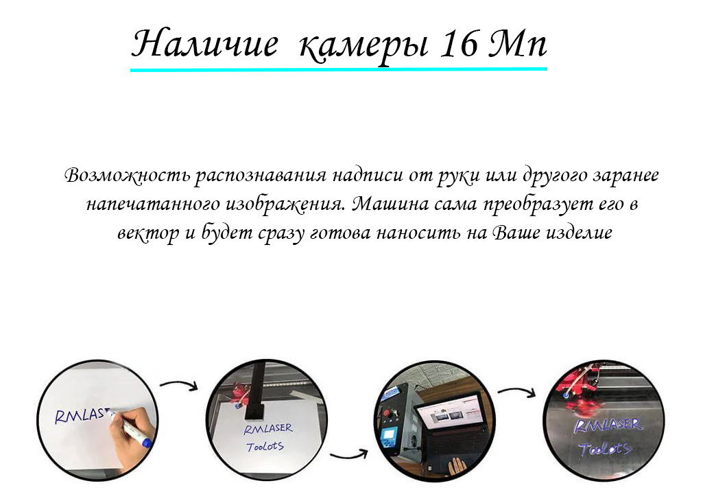 Возможность распознавания надписи от руки или другого заранее напечатанного изображения. Машина сама преобразует его в вектор и будет сразу готова наносить на Ваше изделие.