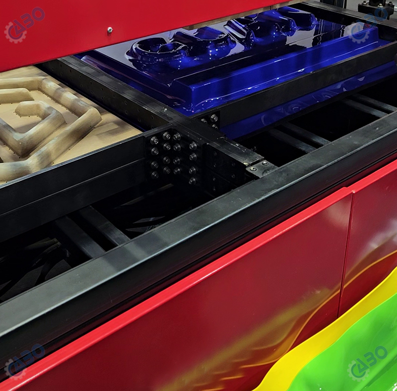 Машина для вакуумной формовки, которая подходит для формования готовых небольших изделий. Движение платформы контролируется пневматической системой