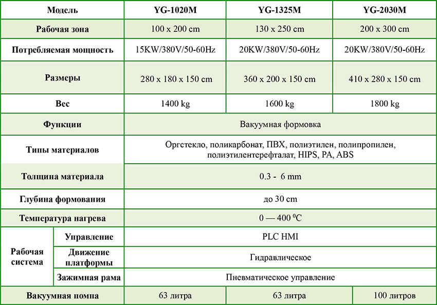 Машина для вакуумной формовки YG-1020M YG-1325M YG-2030M , которая подходит для формования готовых средне-больших изделий. Движение платформы контролируется пневматической системой.