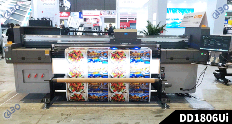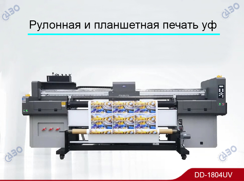 Уф гибридный принтер DD-1804UV / DD-1806UV предоставляет возможность печати на планшете и на рулоне шириной печати 180 см.