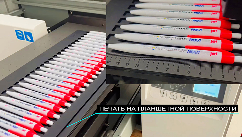 - Возможность планшетной и рулонную печати + на цилиндрических поверхностях