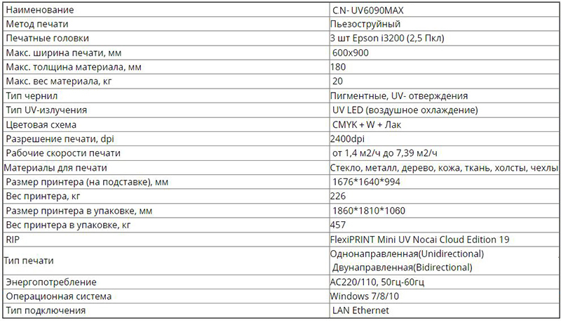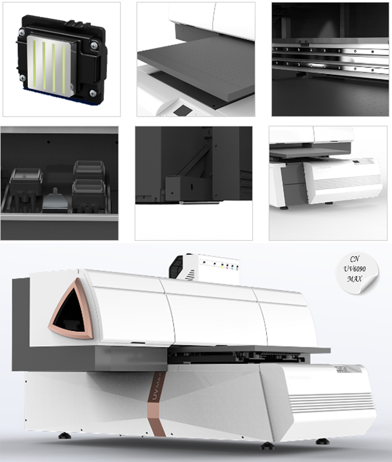 Широкоформатный уф принтер CN-UV6090MAX - это принтер, оснащенной тремя печатающими головками Epson I3200 – лучшими печатающими головками компании EPSON, с высоким разрешением и очень высокой скоростью. Ее также называют быстрой промышленной печатающей головкой, одной из самых популярных печатающих головок в настоящее время. Среди всех моделей принтеров, данная модель обладает самой высокой скоростью печати. Этот принтер с высотой печати 18 см, подходит для большинства продуктов, он также может быть оснащен приспособлением для печати на кружках и бутылках (поворотное устройство).