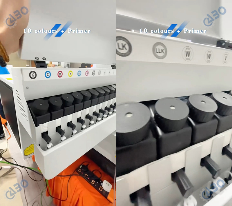 • 3 или 4 печатных головы Epson. Из которых 2 шт Epson i3200 для цветных и белых чернил, 2 шт Epson i1600 для для лака и праймера (для 4-ех головой машины)
