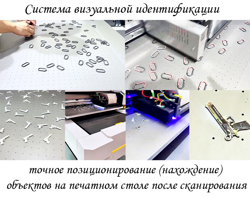 • Принтер оснащен системой визуальной идентификации - точным позиционированием объектов на печатном столе. Камера сканирования с высоким разрешением определит нахождение объектов для печати